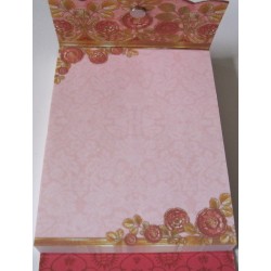 Bloc-notes de 75 feuilles avec rabat aimanté et strass jaune. Chaque feuille est décorée de 2 bouquets de fleurs.