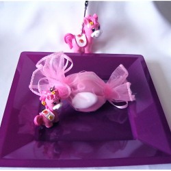 Mémo-clip photo "Poney rose" en résine avec une pince en métal pour accrocher une photo, un message, nom de l'invité lors d'une réception.