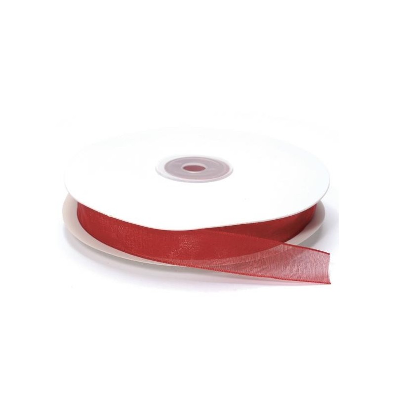 Ruban en organza, Rouge. Largeur 15 mm, composition 100 % polyester, doux et soyeux.